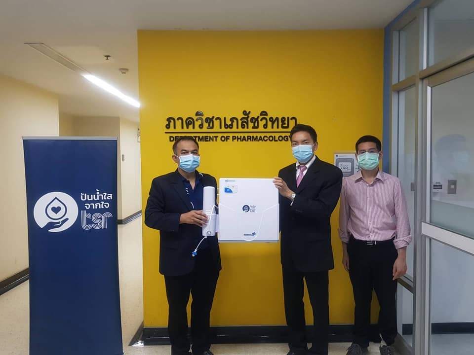 คุณเธียรวรรณี แจ้งอยู่ รองประธานเจ้าหน้าที่บริหาร บริษัท เธียรสุรัตน์ จำกัด (มหาชน) หรือ TSR มอบหมายให้ คุณวัชรชัย วัชรธรรม เจ้าหน้าที่ CSR มอบเครื่องกรองน้ำดื่ม รุ่น ROMA ปันน้ำใสจากใจ TSR จำนวน 1 เครื่อง มูลค่า 7,200 บาท โดยมีผศ. ดร. นพ.กิติพงศ์ สุนทราภา อาจารย์ประจำภาควิชาเภสัชวิทยา คณะแพทยศาสตร์ศิริราชพยาบาล มหาวิทยาลัยมหิดล ให้เกียรติเป็นผู้รับมอบ เมื่อวันที่ 5 เมษายน พ.ศ. 2564