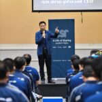 คุณเอกรัตน์ แจ้งอยู่ ประธานกรรมการบริหาร และ คุณสยาม อุฬารวงศ์ ประธานเจ้าหน้าที่บริหาร บริษัท เธียรสุรัตน์ จำกัด (มหาชน) หรือ ทีเอสอาร์ พบปะพนักงาน ในงาน TSR GROUP (WE) GO TOGETHER Townhall Meeting 2022 ครั้งที่ 2