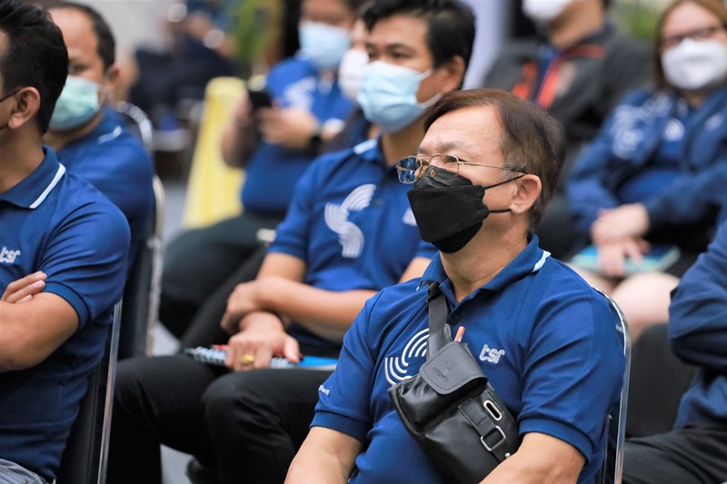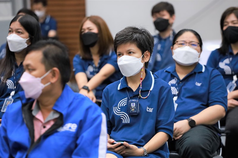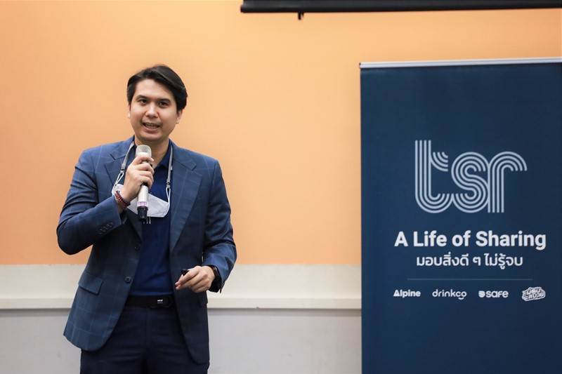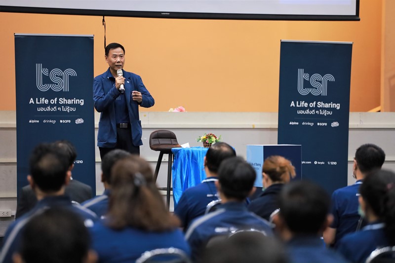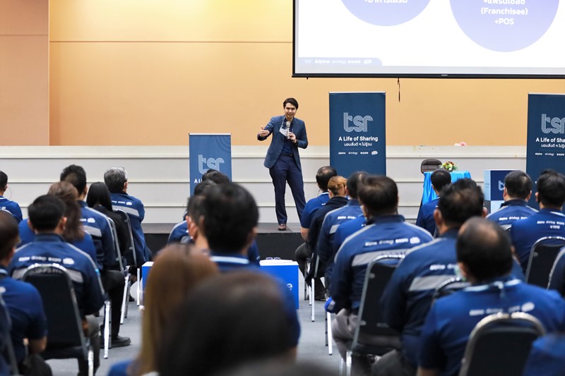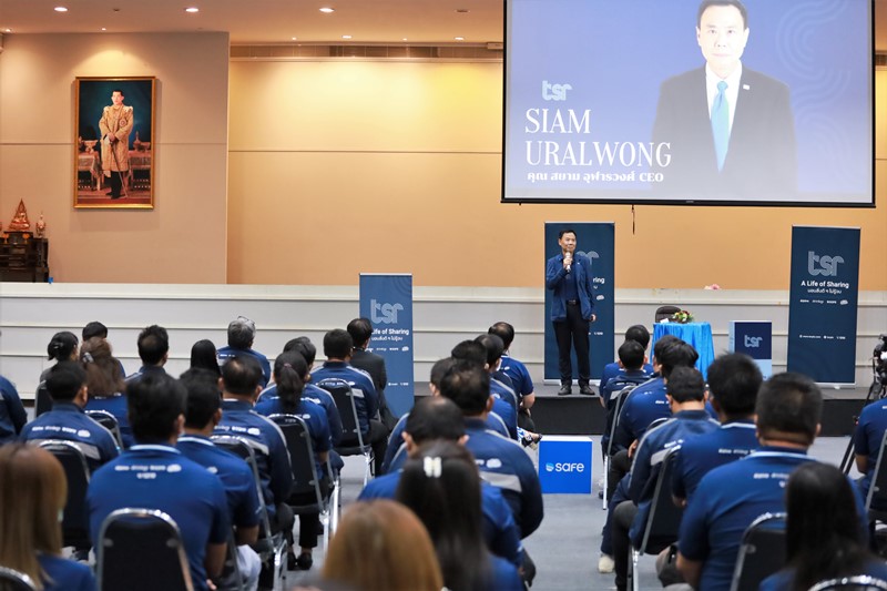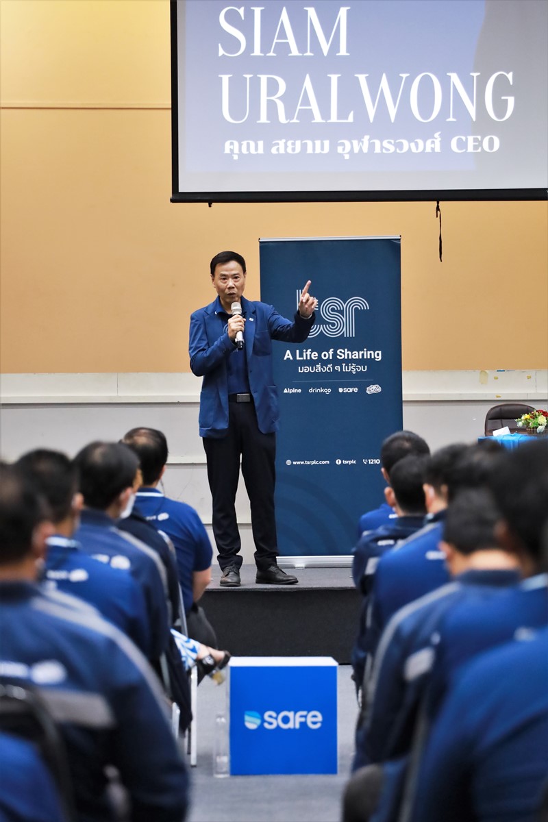 คุณเอกรัตน์ แจ้งอยู่ ประธานกรรมการบริหาร และ คุณสยาม อุฬารวงศ์ ประธานเจ้าหน้าที่บริหาร บริษัท เธียรสุรัตน์ จำกัด (มหาชน) หรือ ทีเอสอาร์ พบปะพนักงาน ในงาน TSR GROUP (WE) GO TOGETHER Townhall Meeting 2022 ครั้งที่ 2