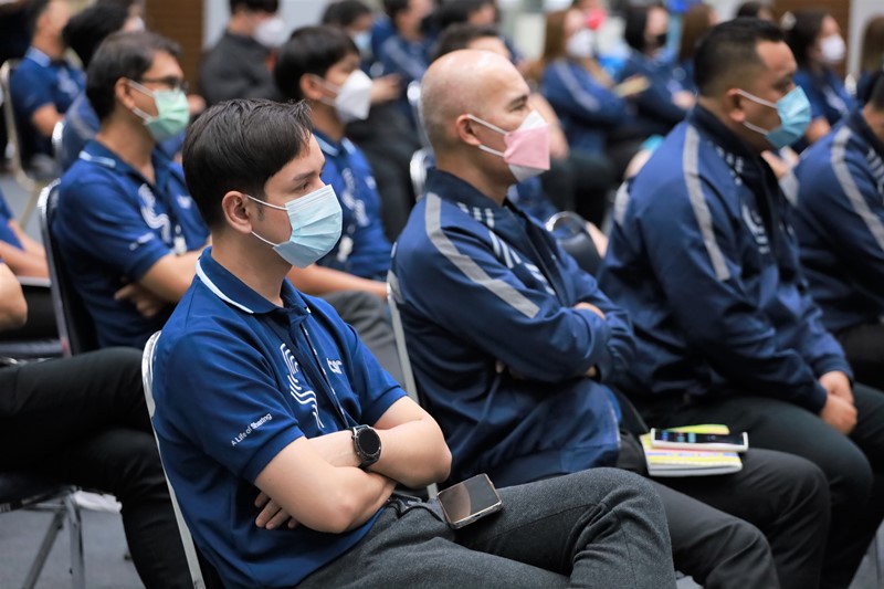 สื่อสารเรื่องนโยบายและแผนการดำเนินงาน, SABUY, พันธมิตรทางธุรกิจ และสร้างแรงบันดาลใจในการทำงานให้แก่พนักงาน เพื่อก้าวสู่การขับเคลื่อนองค์กรให้ก้าวไปข้างหน้า โดยมีผู้บริหารแต่ละส่วนงาน และผู้บังคับบัญชาระดับ 5 ขึ้นไป ร่วมรับฟังการสื่อสาร ภายใต้มาตรการป้องกันการแพร่ระบาดของเชื้อไวรัสโควิด-19 ณ ห้องเจ้าพระยา สำนักงานใหญ่