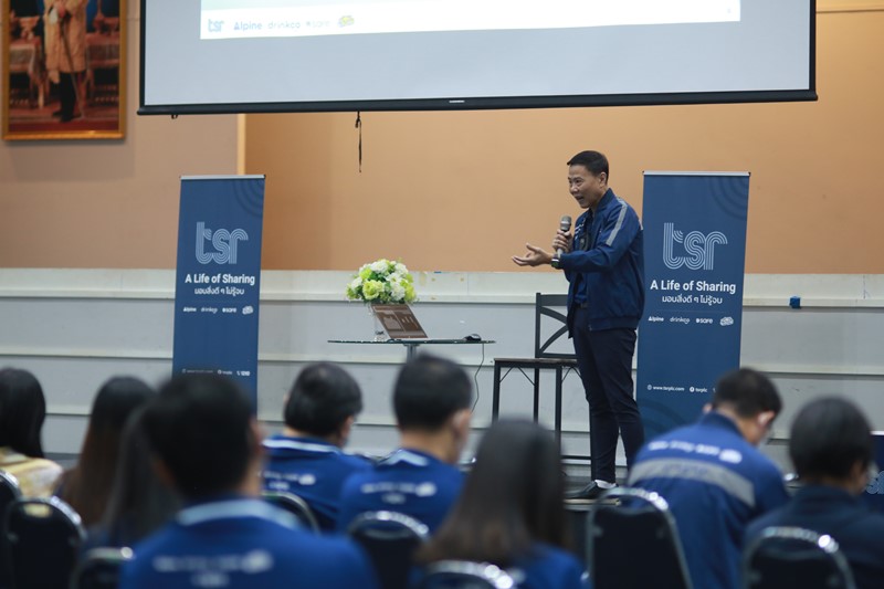 คุณสยาม อุฬารวงศ์ กรรมการผู้จัดการ บริษัท เธียรสุรัตน์ จำกัด (มหาชน) หรือ ทีเอสอาร์ พบปะพนักงาน ในงาน TSR GROUP (WE) GO TOGETHER Townhall Meeting 2022